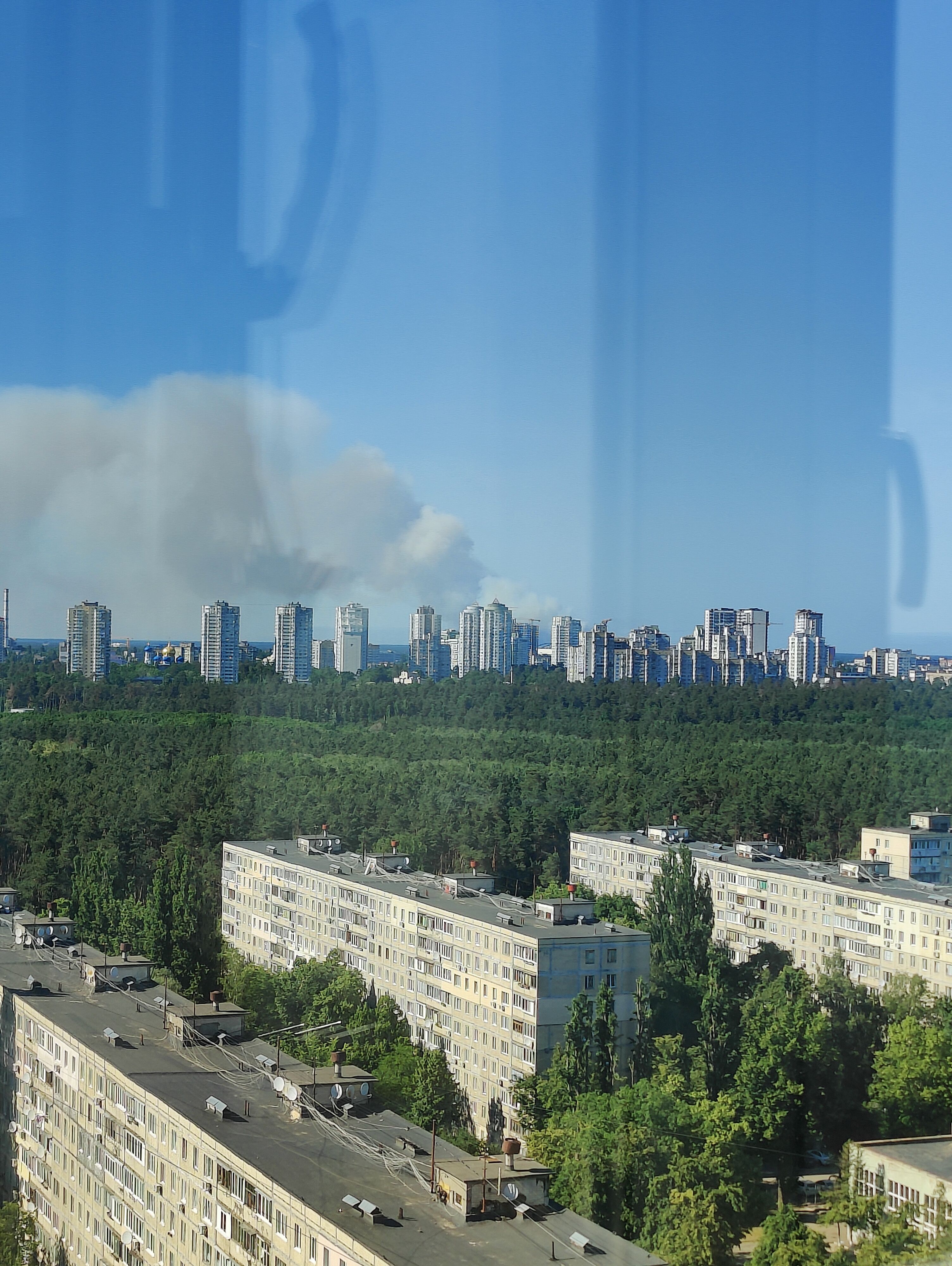 Также паблики публикуют видео с клубами дыма над лесной чащей за Коцюбинским со стороны Ирпеня.