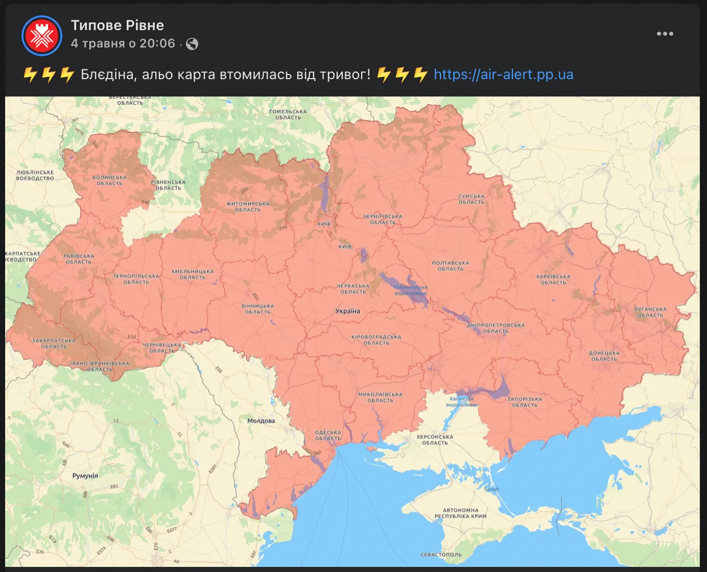 А так извещают о тревоге в Ровно / скриншот из фейсбука