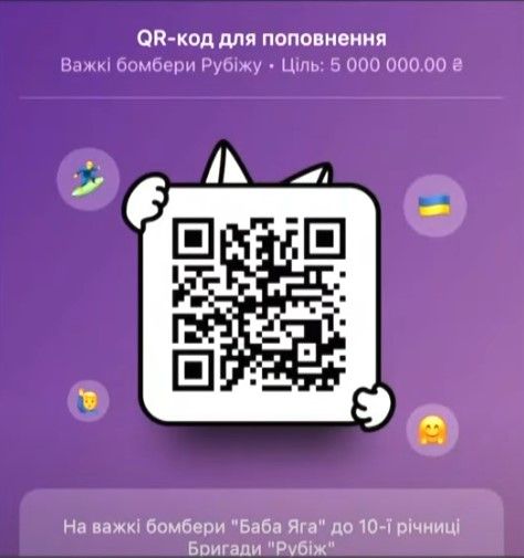 К своей 10-й годовщине бригада "Рубеж" объявила сбор для приобретения тяжелых бомберов "Бага Яга". Приобщиться можно пожертвованием на карточку по номеру: 4441 1111 2822 2217 или отсканировав QR-код.