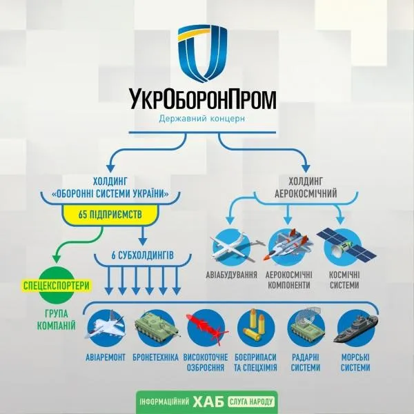 - "Оборонные системы Украины" – в него войдут 65 предприятий, которые распределят по 6 субхолдингам;