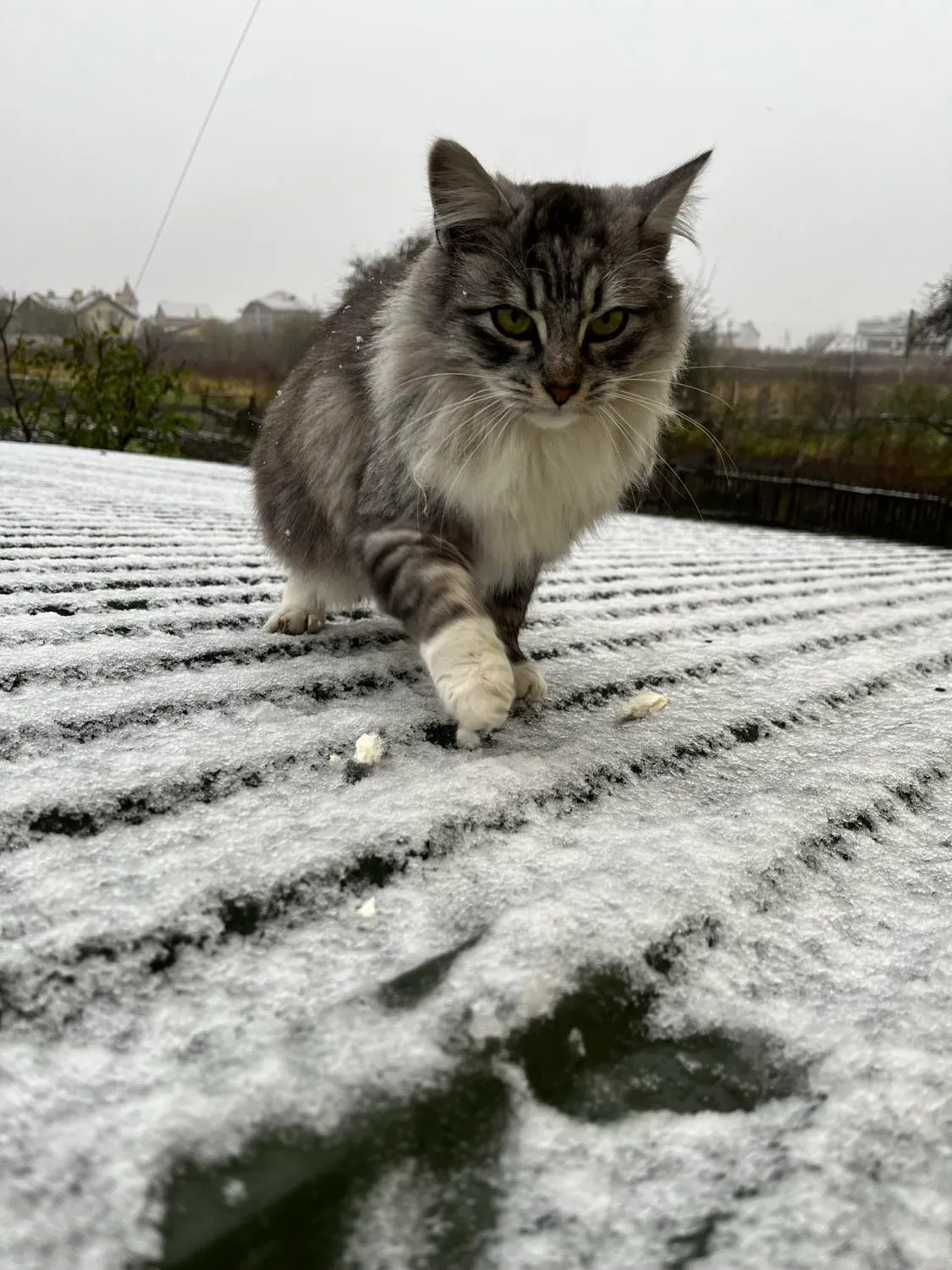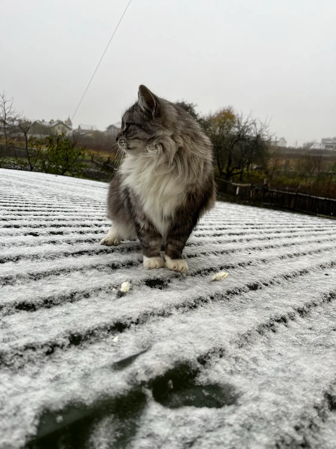 Больше всего радуются приходу снега в город четырехлапые пушистики. Да, котики вылезают на крыши частных домов, чтобы прикоснуться к первому снегу.