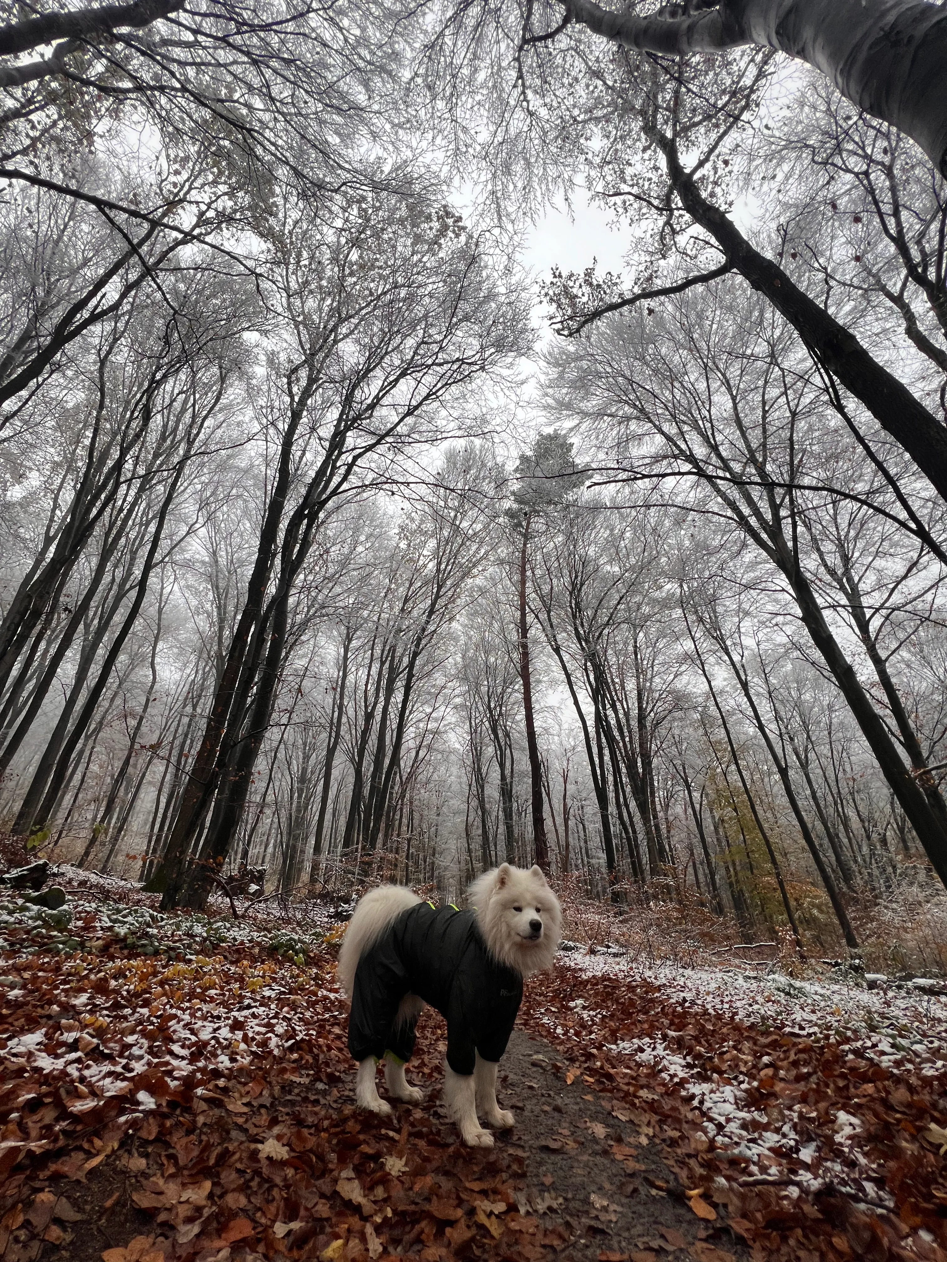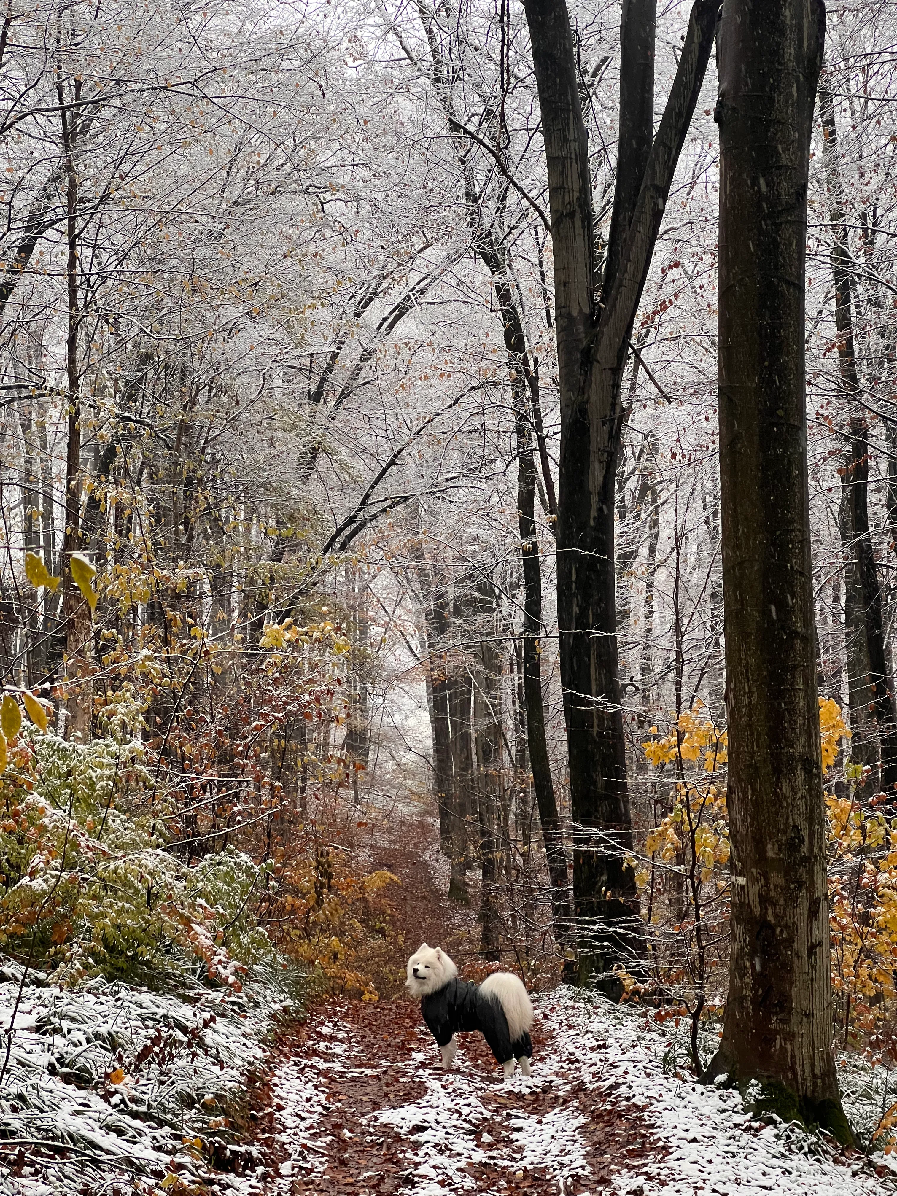 Первый снег в лесу/ Фото с инстаграма dunai_the_samoyed