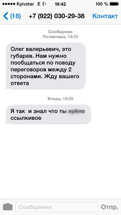 "Получил смс от Губарева. Но мне не о чем говорить с российскими террористами, у которых руки в крови наших героев. А вы бы разговаривали?", - отметил Ляшко.