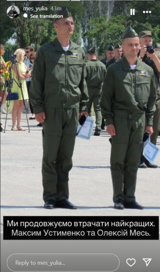- Жена Алексея Меся, который также погиб во время защиты Украины, опубликовала фото Устименко рядом с ее мужем.