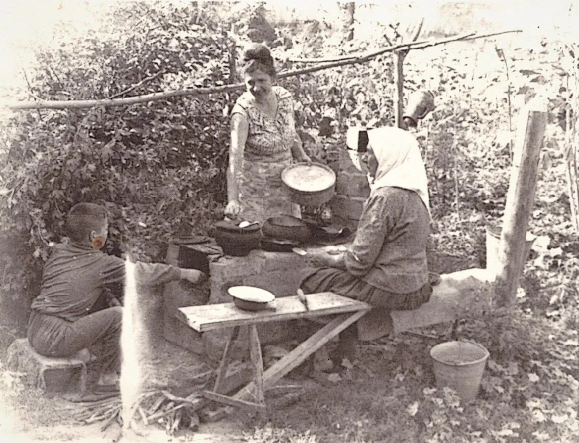 Мама услышала посланцев, у нее было несколько горстей фасоли, которые спрятала в печи, а с краю заложила дровами, будто собиралась зажигать и варить есть, хотя было не из чего. Мама поставила нас возле себя и говорит: "У меня четыре ребенка, которые голодны, больше ничего нет". Мы бегали на бригаду, где была гнилая картошка или кормовая свекла, мы брали их, а бригадир и это отбирал. Мама из той картошки делала крахмал, растирала на солнце, а потом резала, как макароны, и варила суп. Мы обрывали на деревьях листочки, мама сушила их, мяла в руках, мешала на воде и пекла нам оладьи. Лазили мы по деревьям и из гнезд птичек забирали яйца.