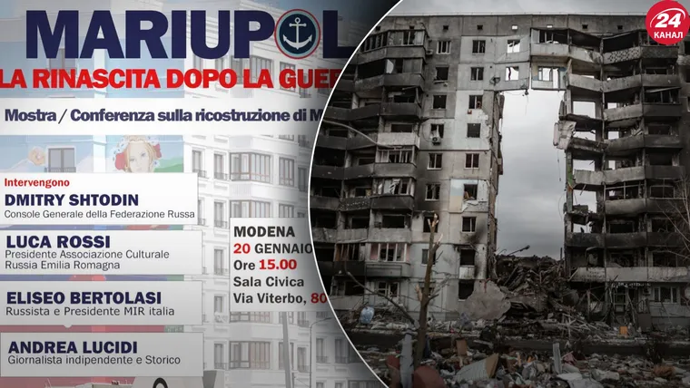 - 4 января появилась информация о том, что в итальянском городе Модена готовят выставку об "успехах" России в "восстановлении" оккупированного Мариуполя. Среди заявленных спикеров на события – итальянский представитель Международного движения русофилов Элизео Бертолази и журналист Андреа Лучиди. Они уже долгое время подыгрывают путинской пропаганде.