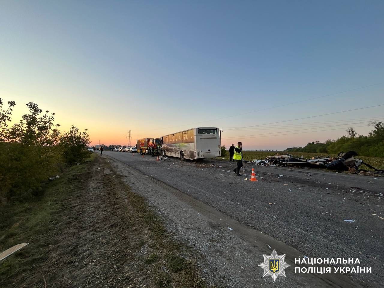 По данным полиции, ДТП произошло 28 августа около 02:00 на автодороге М-30 Стрый – Умань – Днепр – Изварино. По предварительной информации, 22-летний водитель микроавтобуса Mercedes-Benz Sprinter выехал на встречную полосу и врезался в автобус MAN, за рулем которого находился 33-летний мужчина.