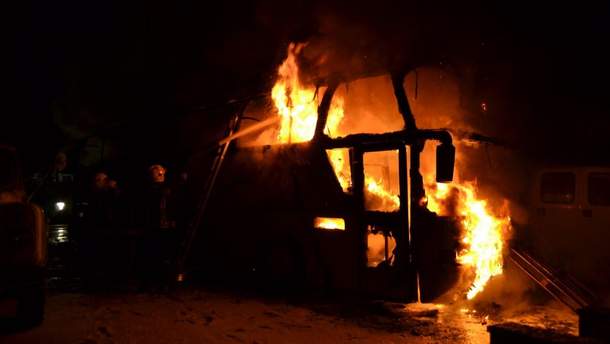 В результате пожара уничтожено 10 маршрутных автобусов "Богдан", сообщили в ГСЧС.