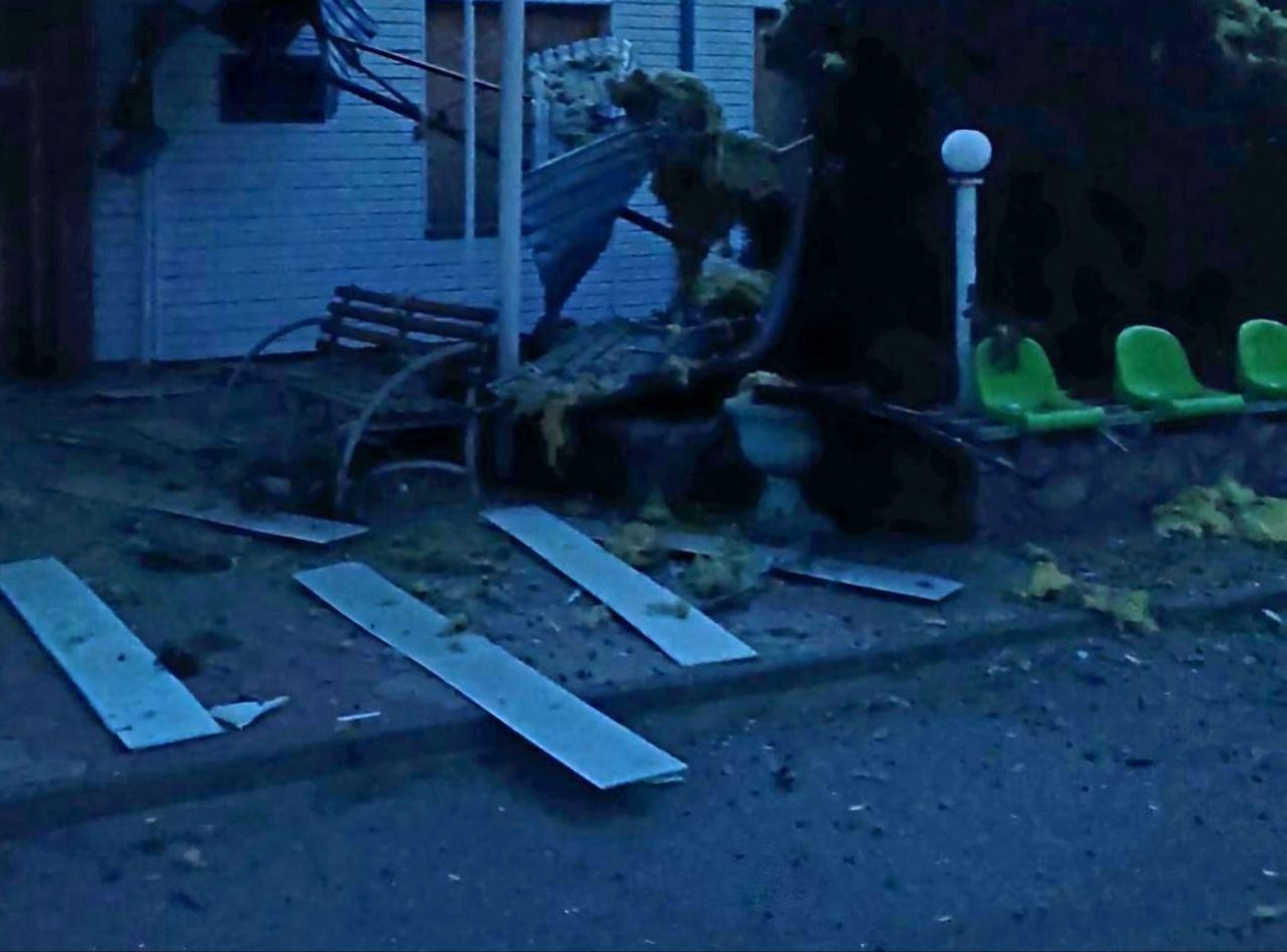 Также повреждены по меньшей мере 9 многоэтажек, 3 общежития, ряд административных зданий, магазин, АЗС, СТО и 10 машин.