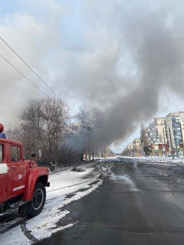 Захватчики обстреляли город Северодонецк, в результате чего вспыхнули многочисленные пожары: