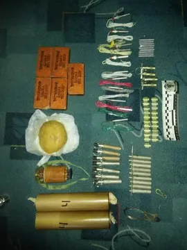 Во время обыска правоохранители изъяли у злоумышленника почти 3 кг тротила в шашках, 600 г пластида, 2 машинки для инициирования взрыва ПМ-4, 15 электродетонаторов, 2 дымовые гранаты, 9 капсюль-детонаторов КД-8А, 21 минный взрыватель, 2 запала, сигнальную ракету СХТ 40, почти 200 патронов различного калибра и др.