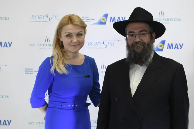 Генеральный директор Sky Food Servoces Наталья Ямпольская и раввин Пинхас Вишедски