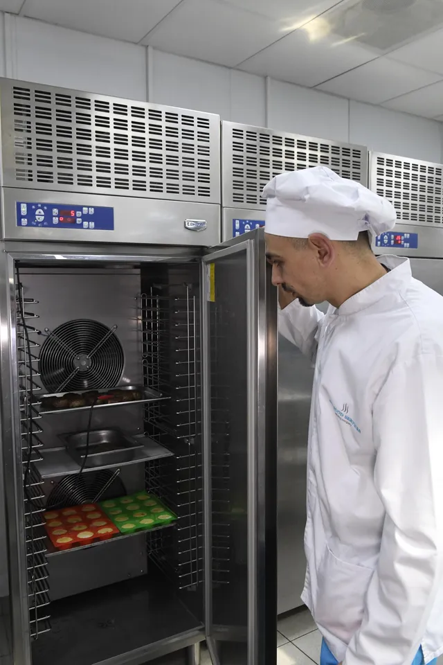 "Мы применяем современные технологии, которые позволяют сохранять качество продукта. На каждом шагу у нас происходит контроль. Также мы применяем технологию су-вид. Она предусматривает приготовление продукта без воздействия воздуха при низкой температуре. Продукт остается мягким, нежным и сочным", – прокомментировал шеф-повар Sky Food Services Андрей Морозюк.
