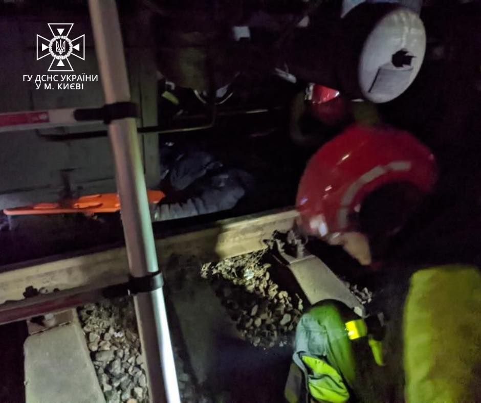 На месте происшествия работали медики и правоохранители. В КГГА отмечают, что специалисты проводили необходимую работу, чтобы вытащить человека из-под поезда.