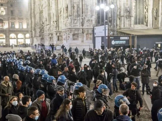 В Милане правоохранители не дали собраться антивакцинаторам на площади Piazza Fontana, как планировали организаторы. Людей просили расходиться, а у самых возмущенных проверяли документы. Несколько митингующих пытались прорваться через барьеры другим путем, но им помешали.
