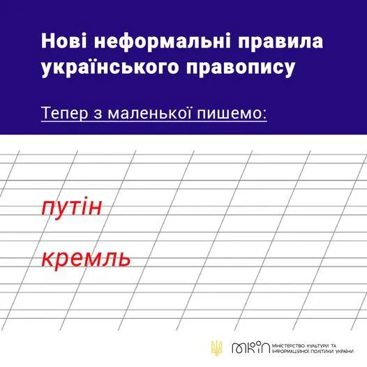 Теперь с маленькой буквы можно писать слова "кремль" и "путин", не опасаясь орфографических ошибок. Об этом сообщили на своей странице ведомства в фейсбуке.