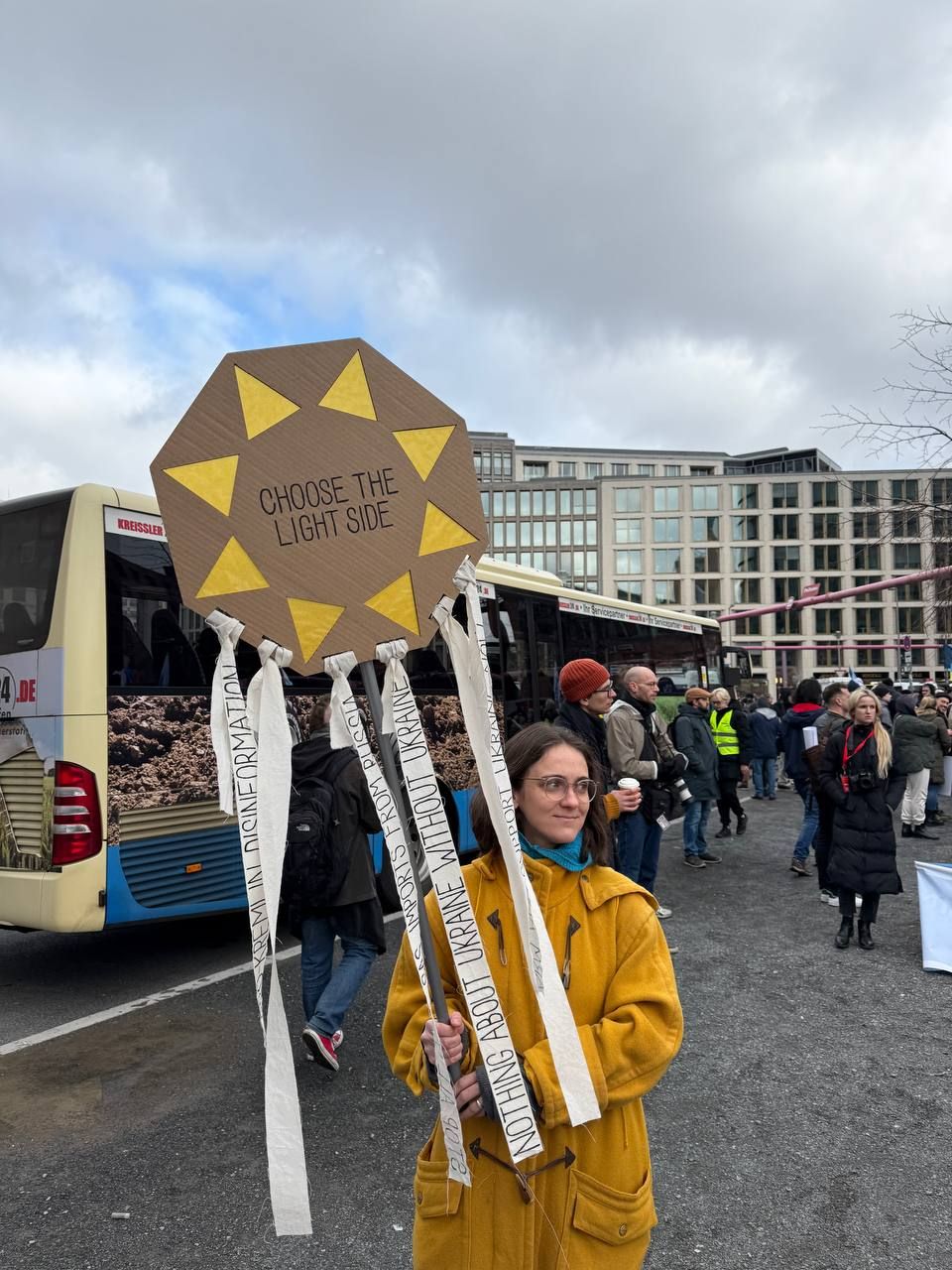Акция началась на Потсдамской площади, затем шествие двинулось в сторону посольства России, возле которого находится мемориал памяти Алексея Навального.