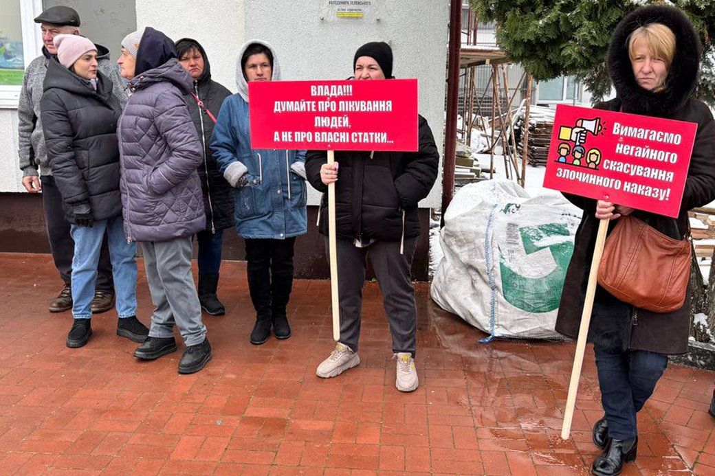 Возле больницы на Житомирской области прошел митинг пациентов и врачей: смотрите видео