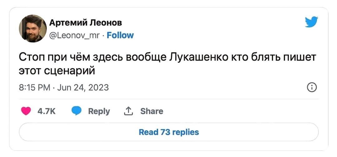 Отметим, что некоторые пользователи сети вообще не поняли, как появилась в этой истории фигура Лукашенко. Такой абсурдный финал мятежа даже "переплюнул" сценарий последнего сезона "Игры престолов".