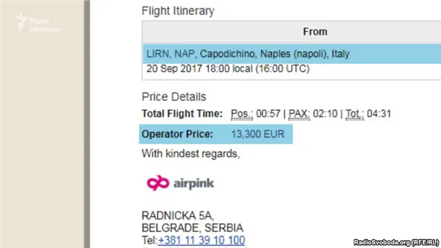 Также в AirPink сообщили, что перелет самолета Неаполь – Киев стоит 13 300 евро.