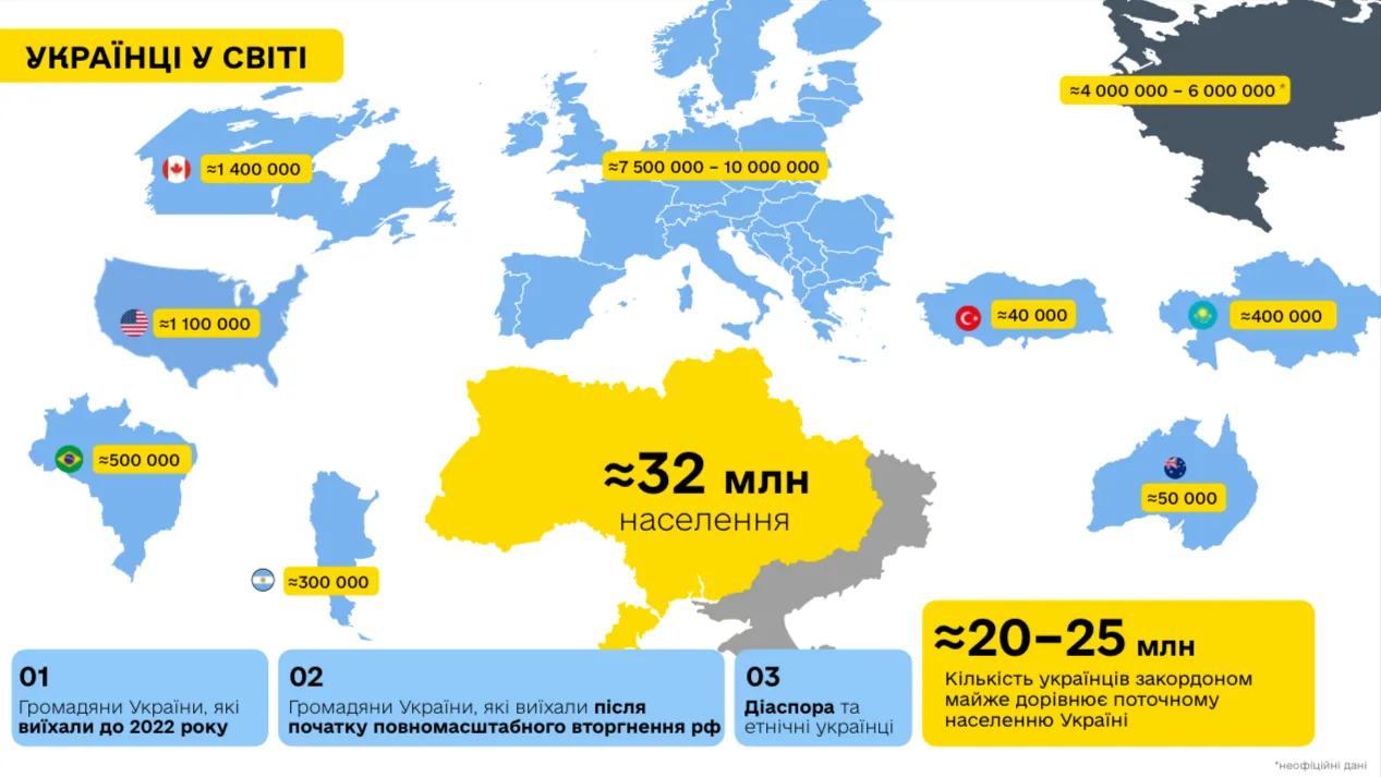 Сколько украинцев в мире / Инфографика Министерства национального единства Украины