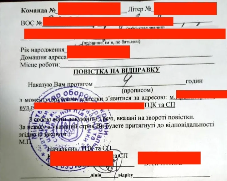 Пример мобилизационного распоряжения / Фото с сайта inseinin.com.ua