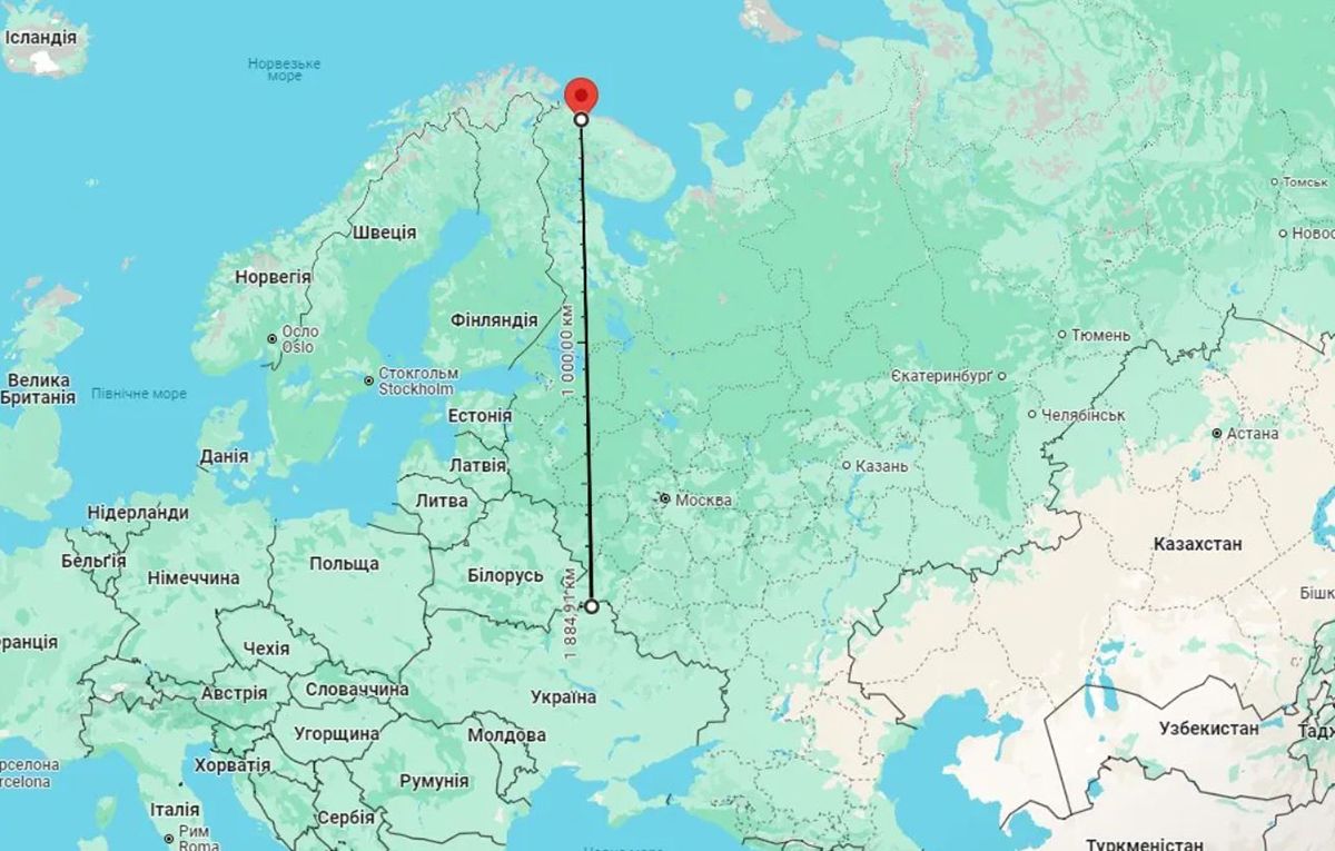 Расстояние от Украины до Мурманска – 1 926,79 километра по прямой.