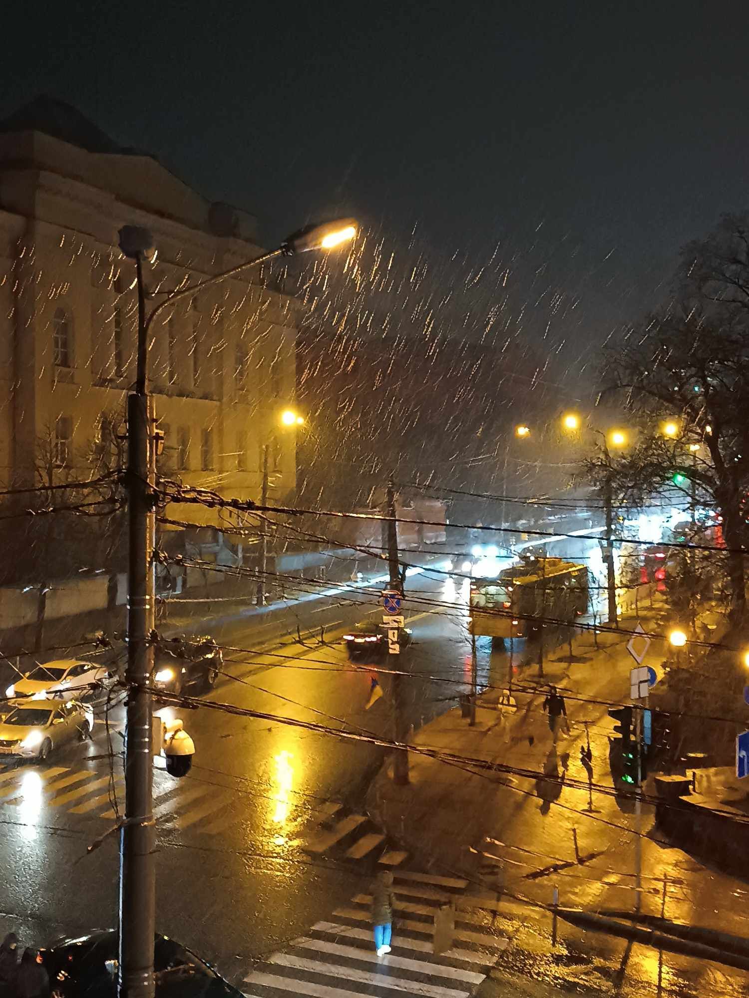 Под вечер 22 января в Киеве и области пошел мокрый снег. На кадрах можно увидеть, как красиво осадки переливаются с вечерним светом фонарей, и кружатся в воздухе.
