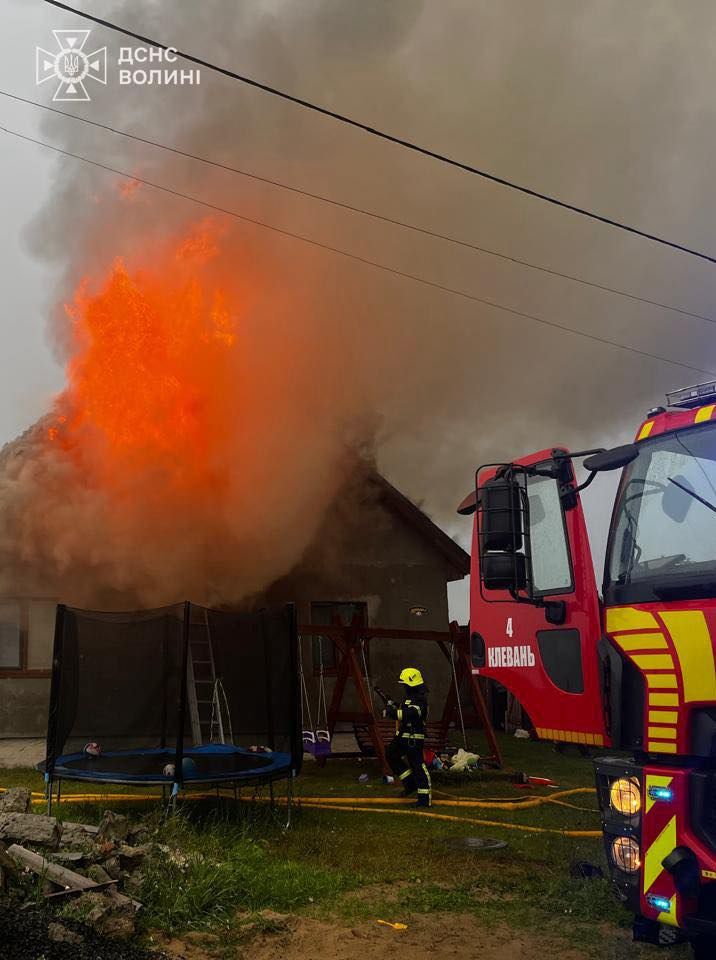 В результате попадания молнии в дом вспыхнул пожар. К счастью, обошлось без пострадавших.