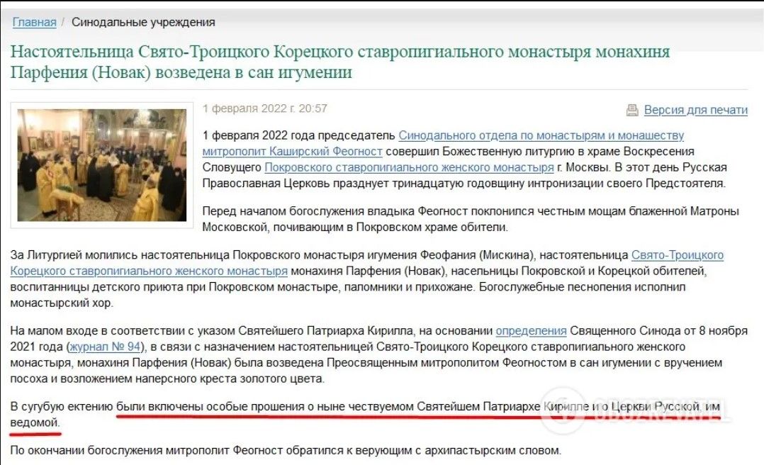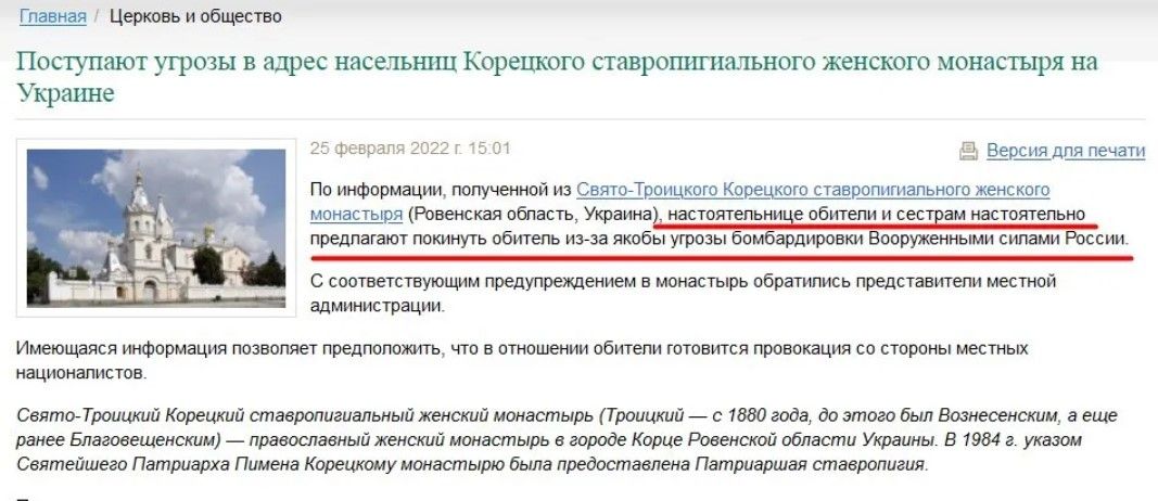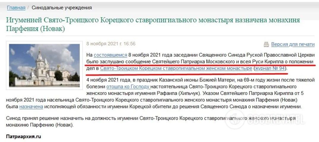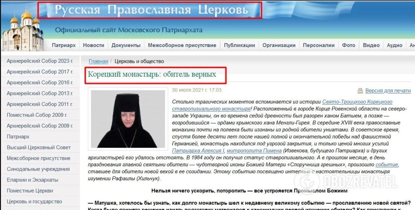 Связи Свято-Троицкого Корецкого ставропигиального монастыря с РПЦ на сайте русской церкви / OBOZREVATEL