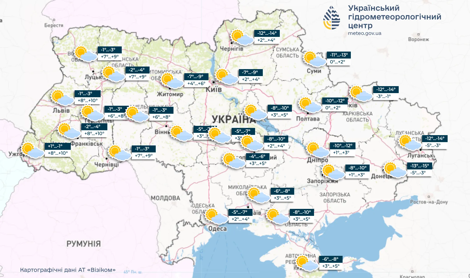 Где будет до -15 / Инфографика Укргидрометцентра