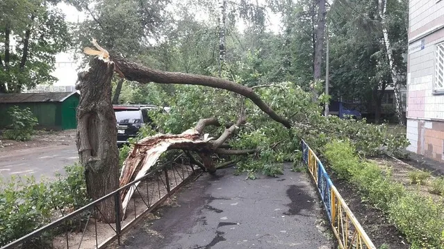 Пользователи соцсетей начали выкладывать фотографии и видео урагана в Москве.