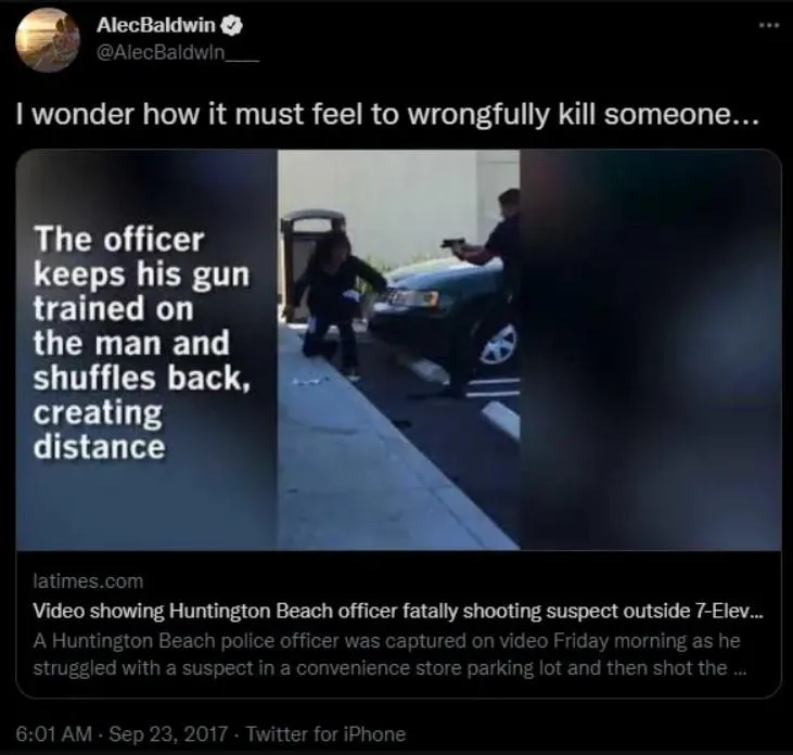 Статью с видео, которая рассказывает о трагедии, Алек распространил в своем блоге, написав, что ему интересно, что чувствует человек, когда убивает случайно.