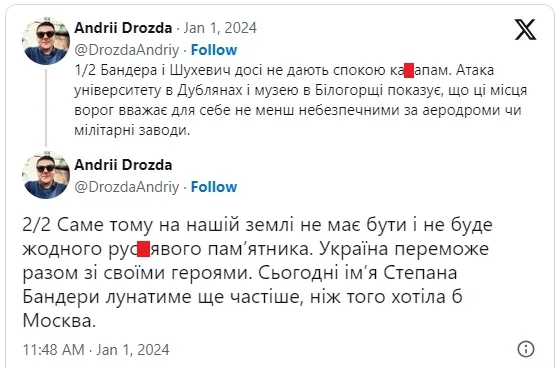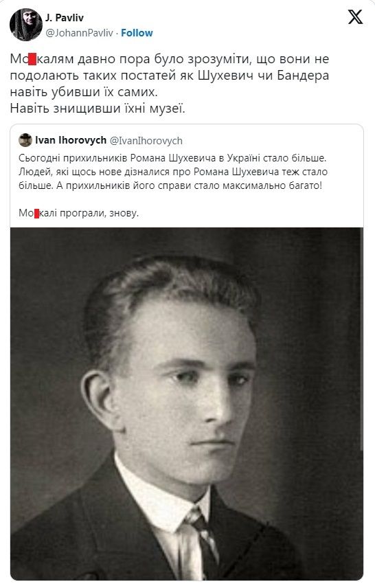 Украинцы в сети также добавляют, что россияне никогда не смогут преодолеть такие фигуры, как Шухевич и Бандера, даже уничтожив их музеи.
