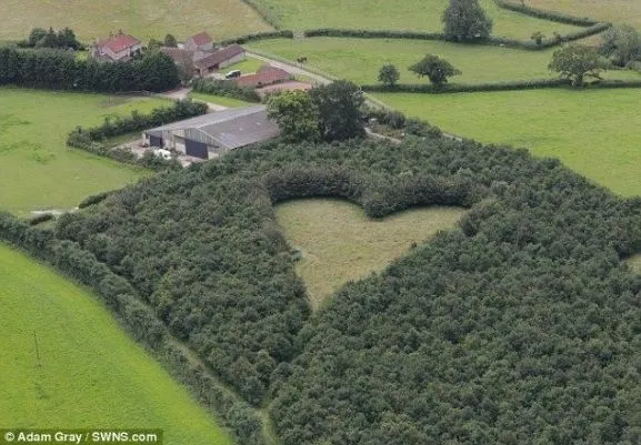 Уинстон засадил деревьями 6 акров площади, оставив свободной от деревьев небольшую поляну в форме сердца, острый конец которого указывает в направлении дома, где Дженет жила в детстве.