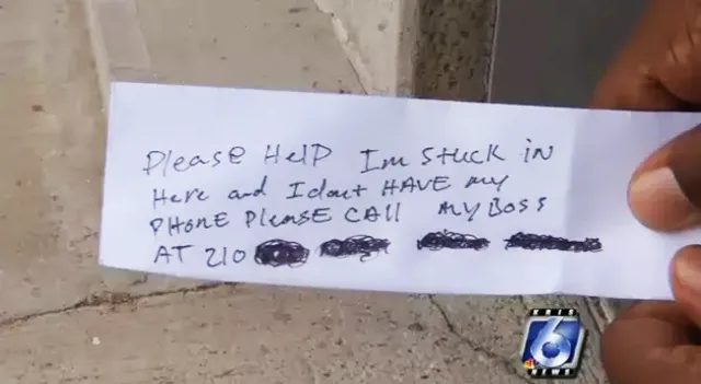 На одной из записок были обращены: "Пожалуйста, помогите. Я застрял здесь и у меня нет телефона. Пожалуйста, позвоните моему начальнику".