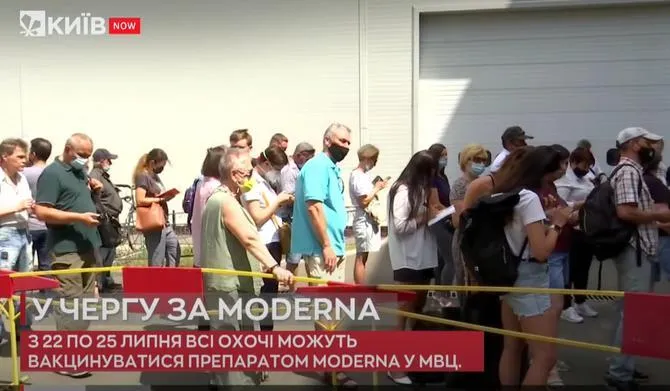 Количество людей, которые хотят получить прививку Moderna в Киеве, немалое / Скриншот из видео телеканала "Киев"