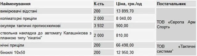Заказаны ночные и коллиматорные прицелы, бинокли, противоосколочные очки, измерители расстояния, а также накладки к автомату Калашникова с планкой типа "пикатини".