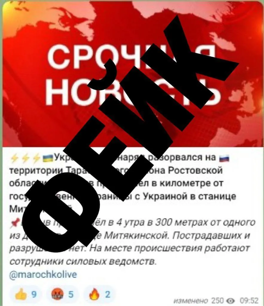 Кстати Россия продолжает распространять фейки: заявили о новом "разорвавшемся снаряде" в Ростовской области