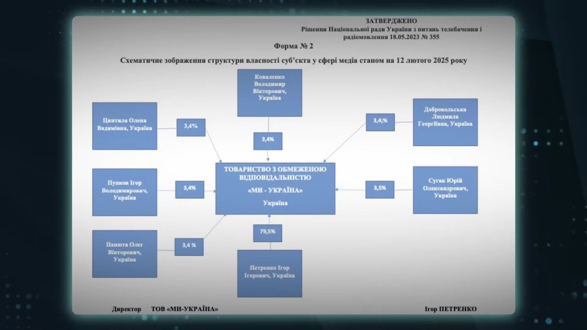 Железняк отметил, что наибольшую долю в "Мы-Украина" имеет человек, который не имеет отношения ни к закрытому каналу Ахметова, ни к медиа – политолог Игорь Игоревич Петренко. Именно он имеет наибольшее и решающее влияние в компании, ведь имеет 79,5%. Также Петренко стал директором медиагиганта "Мы-Украина".