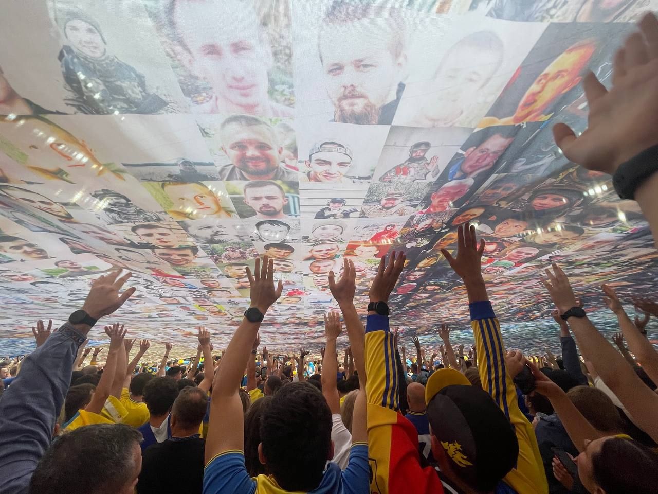 Цель акции - напомнить миру, что тысячи футбольных фанатов защищают Украину на фронте. Они могли бы болеть за сборную на трибунах, но вместо этого защищают страну и отдают за мир в Европе свою жизнь, – отметили организаторы перформанса.
