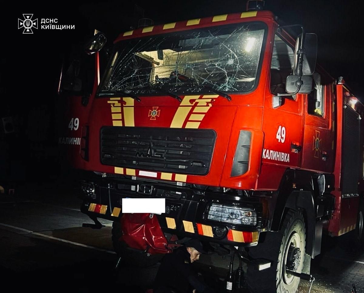 Во время тушения пожара агрессор повторно ударил по объекту, в результате чего повреждены два пожарно-спасательных автомобиля,