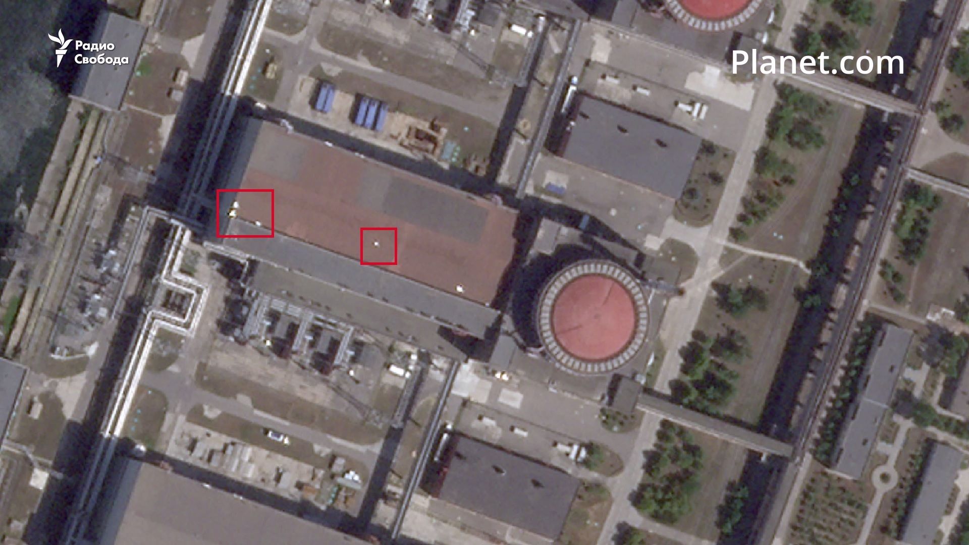 Неизвестные объекты на IV энергоблоке видны на фото, сделанных утром 5 июля и опубликованных Planet Labs. Разрешение снимка не позволяет понять, что именно появилось на крыше энергоблока.