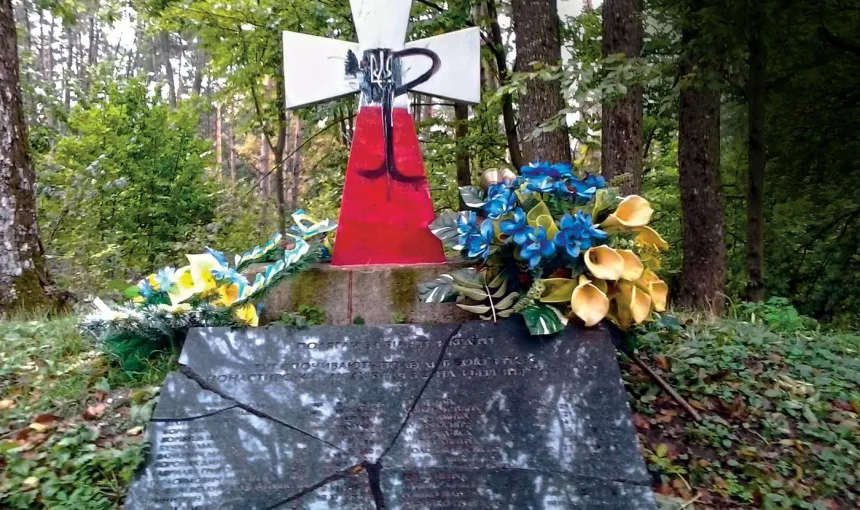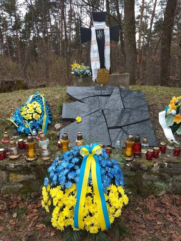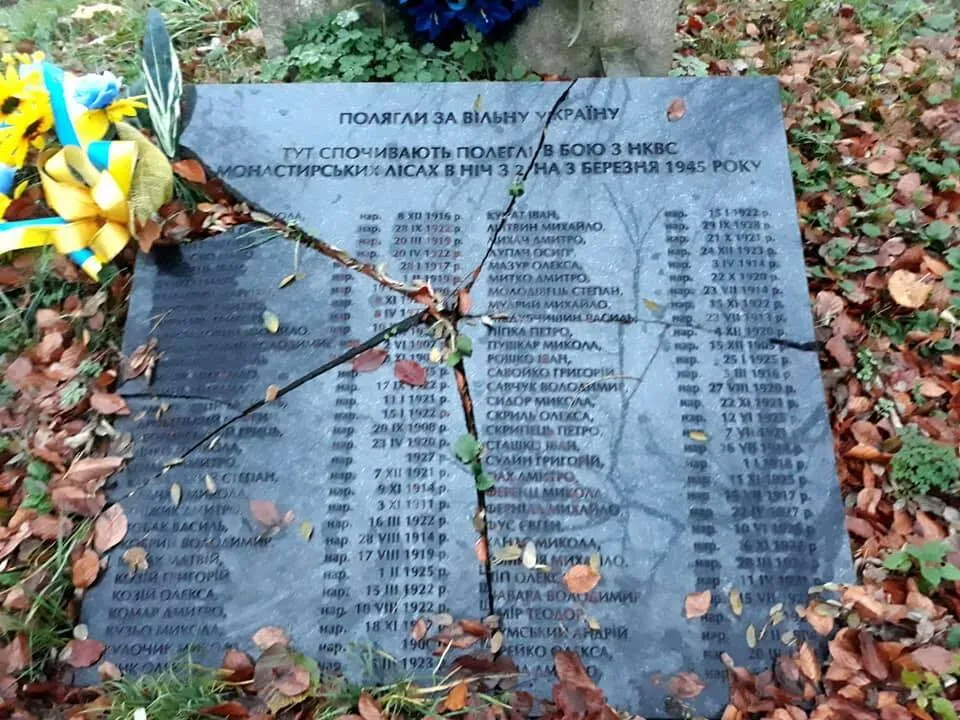 "Братская могила украинцев, павших в бою с советским НКВД в Монастырских лесах в ночь со 2 на 3 марта 1945 года", – говорилось на ней.