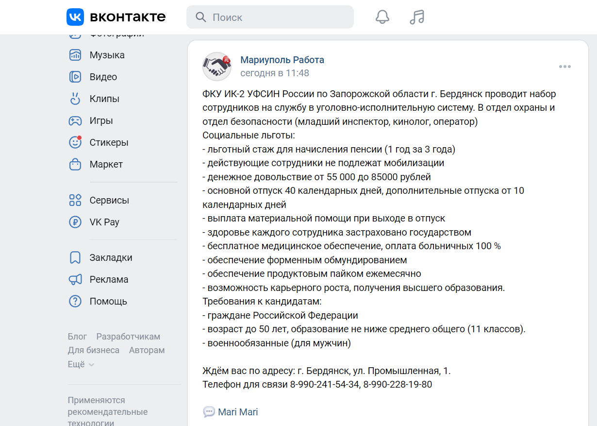 Примеры вакансий на оккупированных территориях: смотрите фото