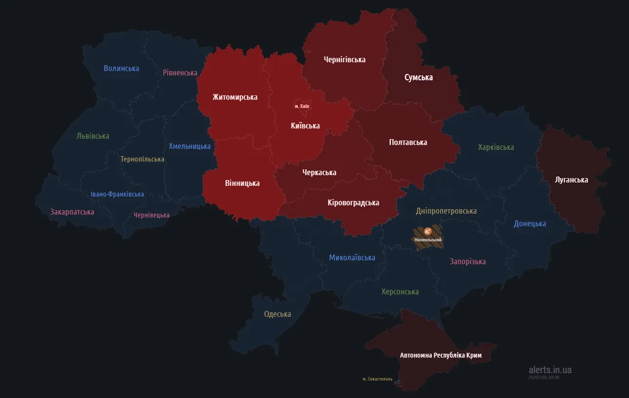 Так выглядит карта воздушных тревог на 02:30 / alerts.in.ua