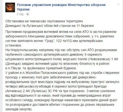 Об этом сообщили в ГУ разведки Минобороны Украины.