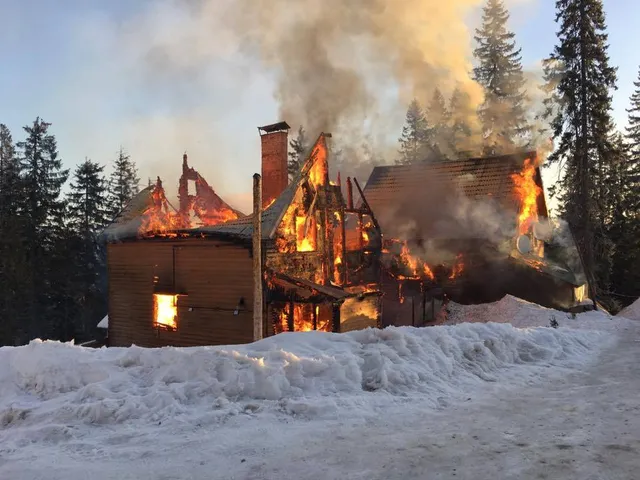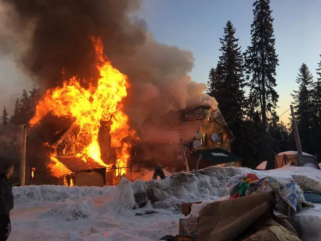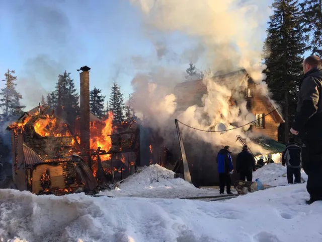Еще до прибытия спасателей, огонь перекинулся на другой деревянный домик.