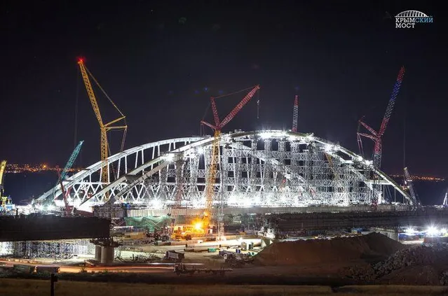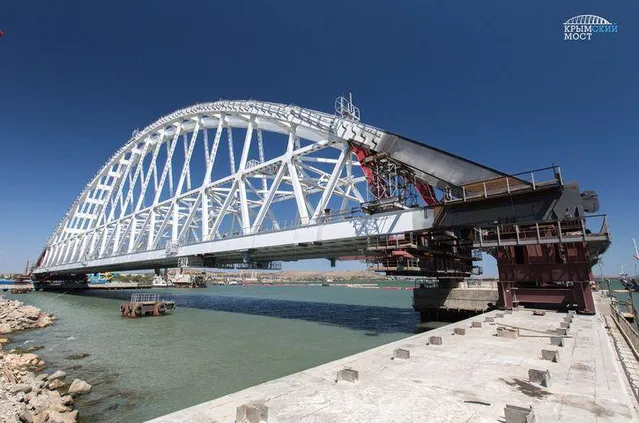 "Арку закрепят с помощью почти 700 высокопрочных тросов, которые протянуты к конструкции от 16 домкратов. Конструкцию начнут поднимать на проектную высоту со средней скоростью пять метров в час, после чего закрепят ветровыми связями к ригелям фарватерной опоры", – отметили в инфоцентре "Крымский мост".