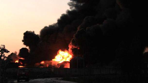 Как отмечают пожарные, пока они предотвращают возгорание пламени на соседних резервуарах и охлаждают их.